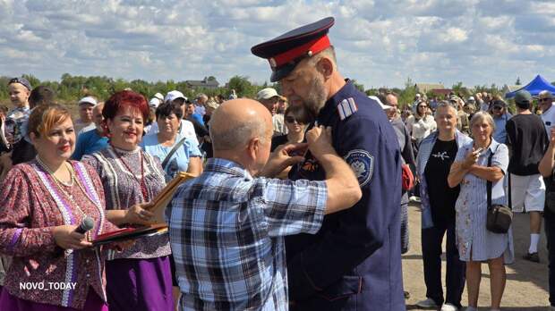 В торжественной обстановке глава района Николай Моисеев вручил Георгиевский крест Донецкой Народной Республики атаману ЮКО "Новоаннинское" Александру Челышеву.